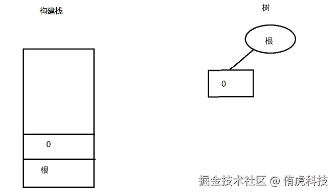 之后,再调用添加函数,由于该函数是向栈顶元素添加子节点,所以就变成了: