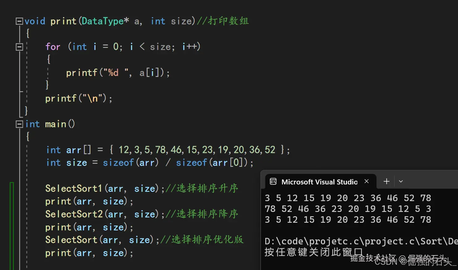 void SelectSort(int* a, int n)//选择排序优化版——左右同时选择