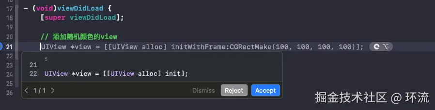 在实际的体验中,代码提示的速度明显优于使用GitHub Copilot的Copilot for Xcode。
