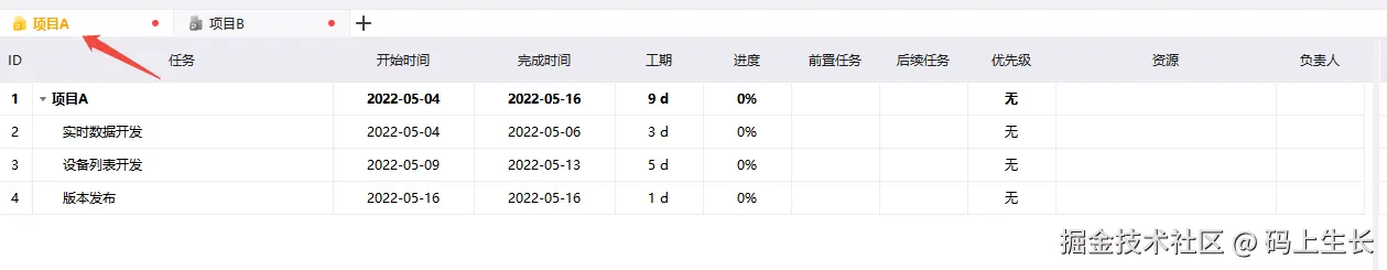 该项目负责人所在团队有 10 人,负责项目 A、B 两个项目,这就需要两份需求文档、两个项目计划以及两个版本发布时间。