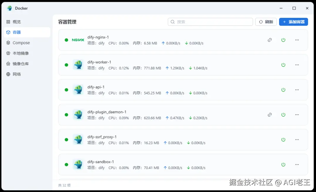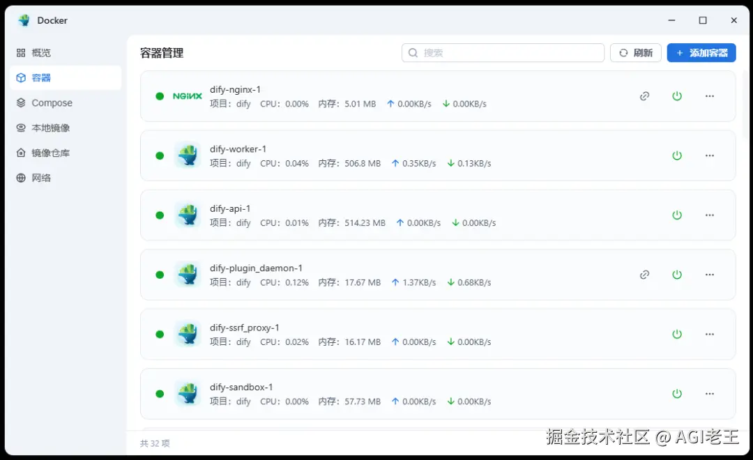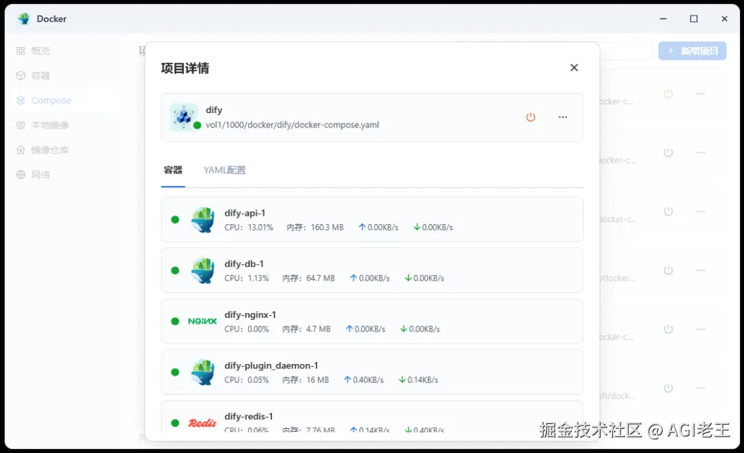 由于这个 Dify 涉及比较多容器和参数,这里我就不做化简了,完全按照官网模板进行部署了