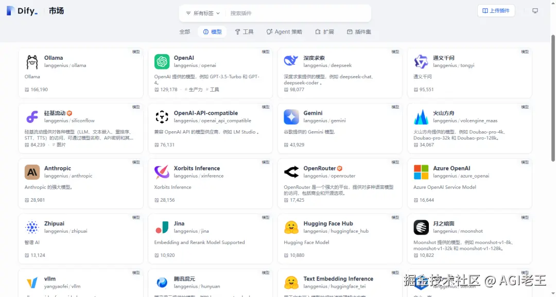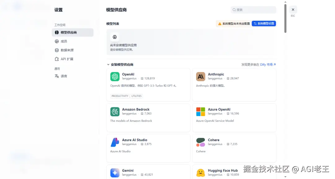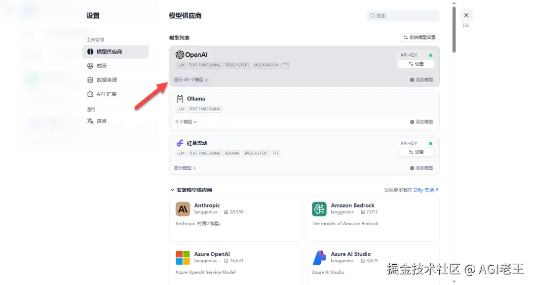 选择需要的模型供应商安装就行(有问题刷新网页,多安装几次)
