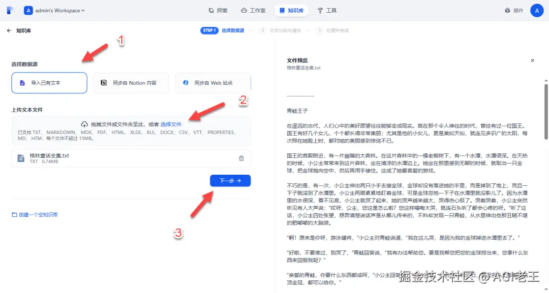 按需求选择,这里我导入一个 txt 文本,点击下一步