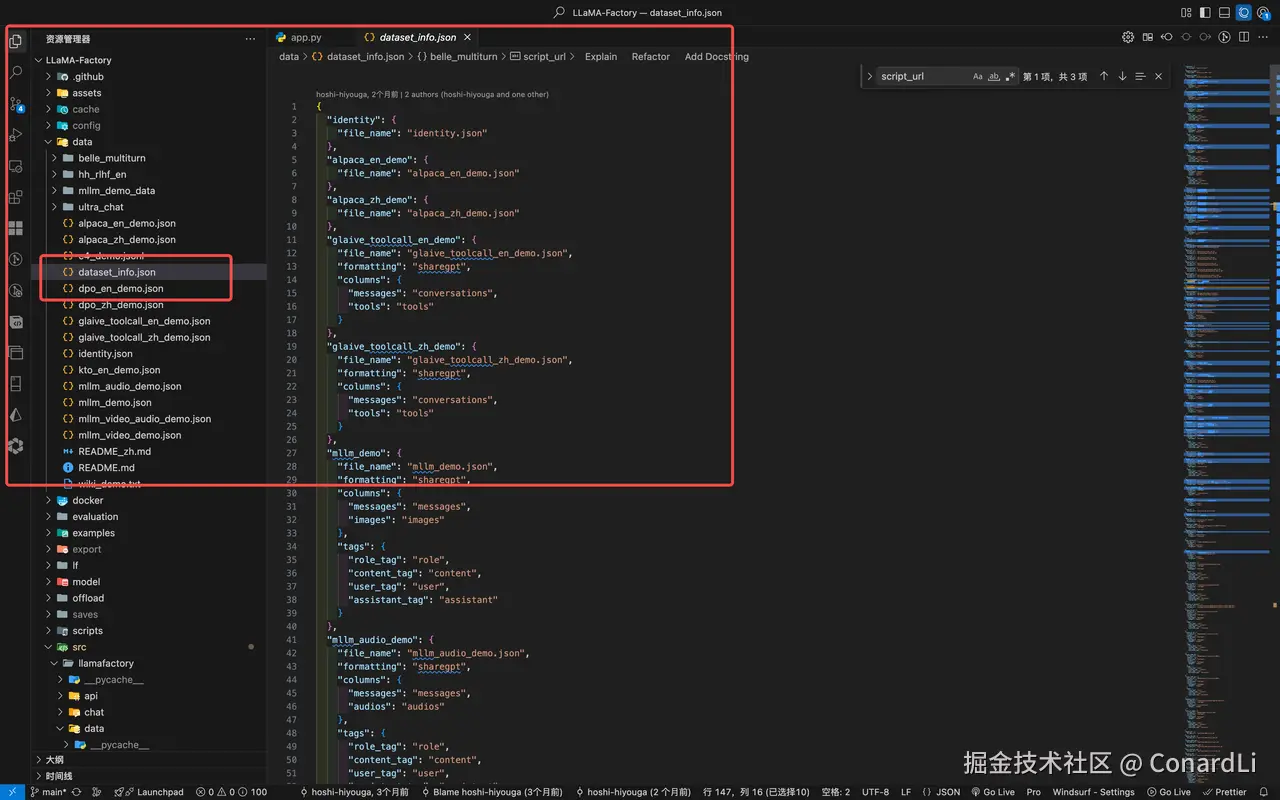 我们到 Easy Dataset 的项目数据目录,可以看到已经生成好的 dataset_info.json