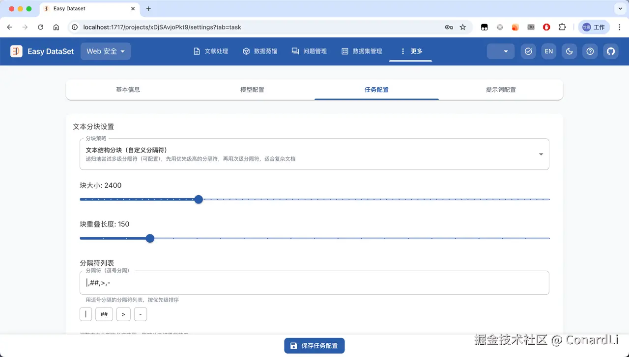 进入【项目配置-任务配置】,调整本次数据集提取任务相关配置: