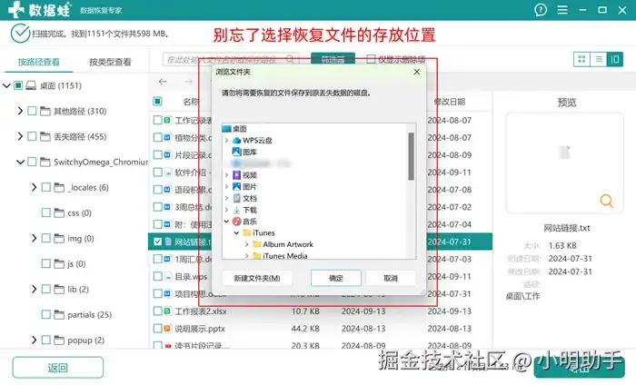 步骤3: 在弹窗里面选择电脑内部的位置,用于存储恢复文件。