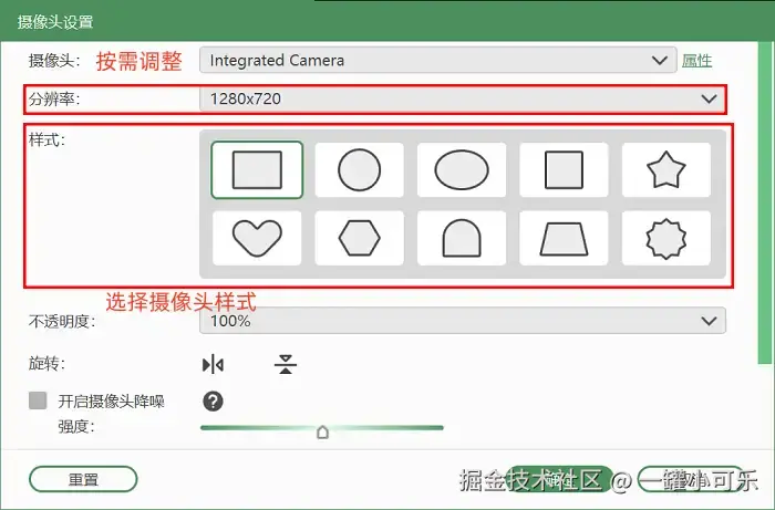 - 自由使用摄像头: 一边讲PPT一边录人像的软件?选数据蛙录屏软件准没错!它可以自由设置是否开启摄像头,还可以调整摄像头的样式等。