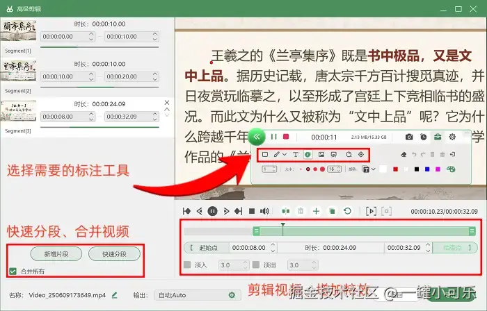 步骤3:在录制的时候,我们还可以用软件中的放大镜等工具去标注内容重点。录制好PPT后,我们还可以利用 “高级剪辑” 工具,去删减不必要的片段、给视频增加特效等。