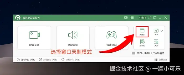 步骤1:PPT屏幕录制要怎么录?在官网中下载安装包,双击运行,疯狂点击 “下一步” 直到完成。接着打开软件,选择 “窗口录制” 模式。