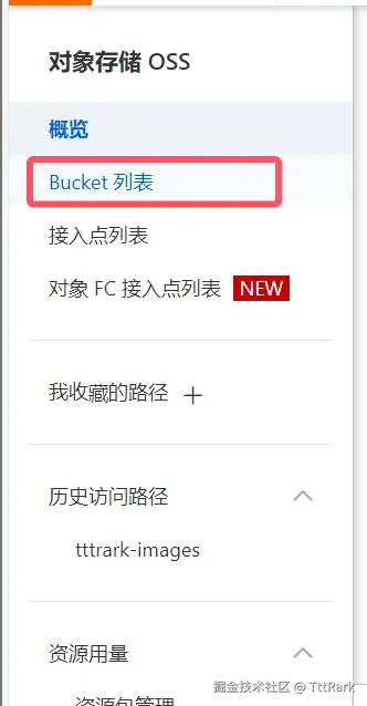 左侧导航栏选择Bucket列表。