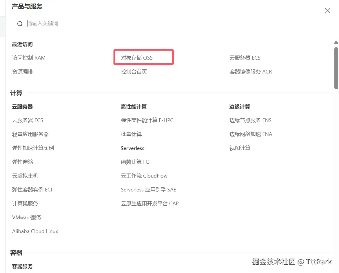 控制台搜索对象存储OSS进入。
