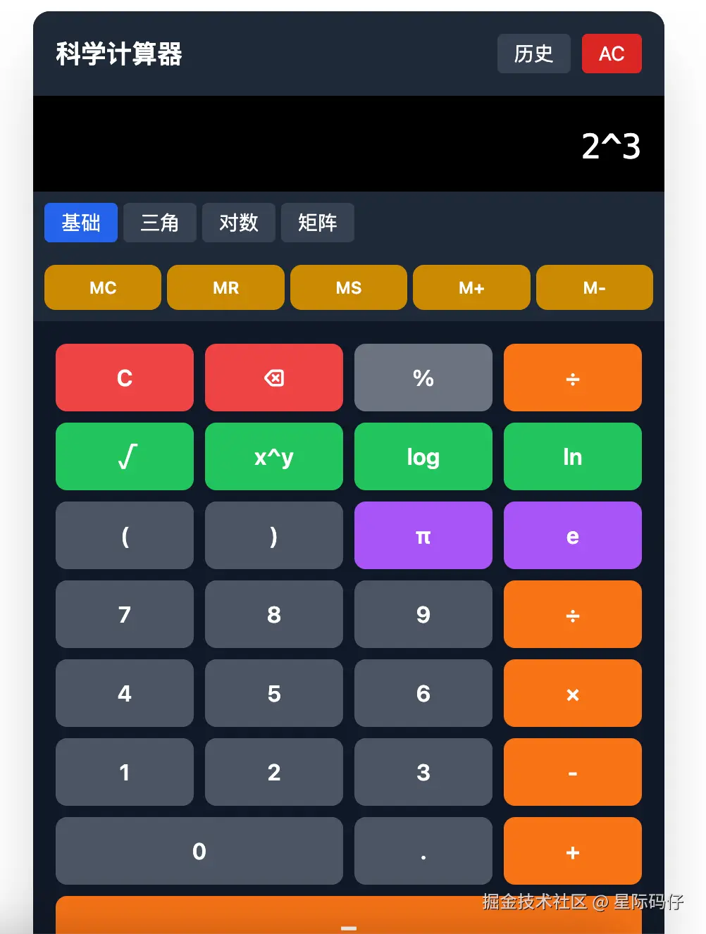 例如,使用 MathJS 创建一个功能完善的科学计算器: