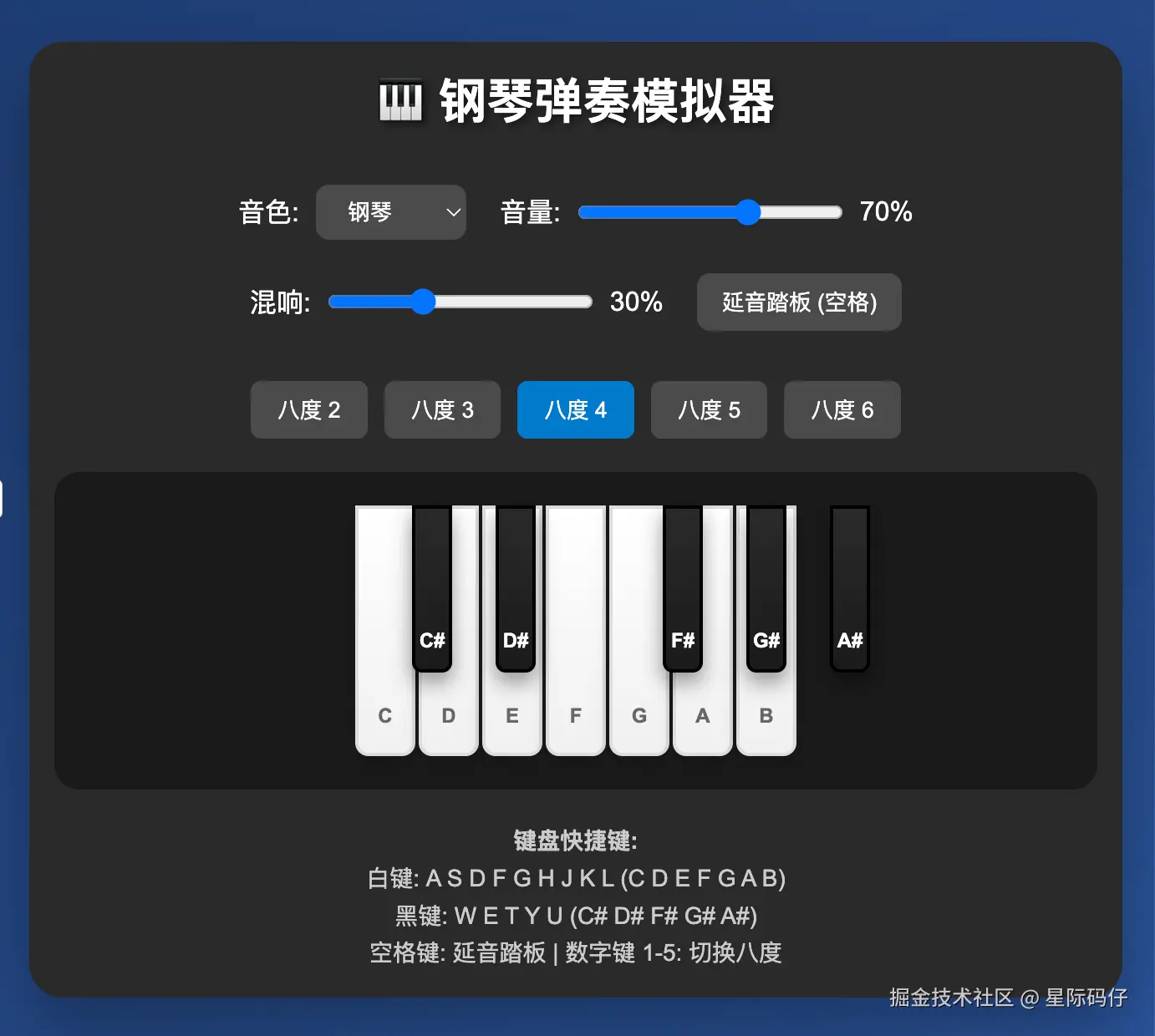 使用tone.js制作一个钢琴弹奏模拟Web应用,还原每一个琴键的音色。