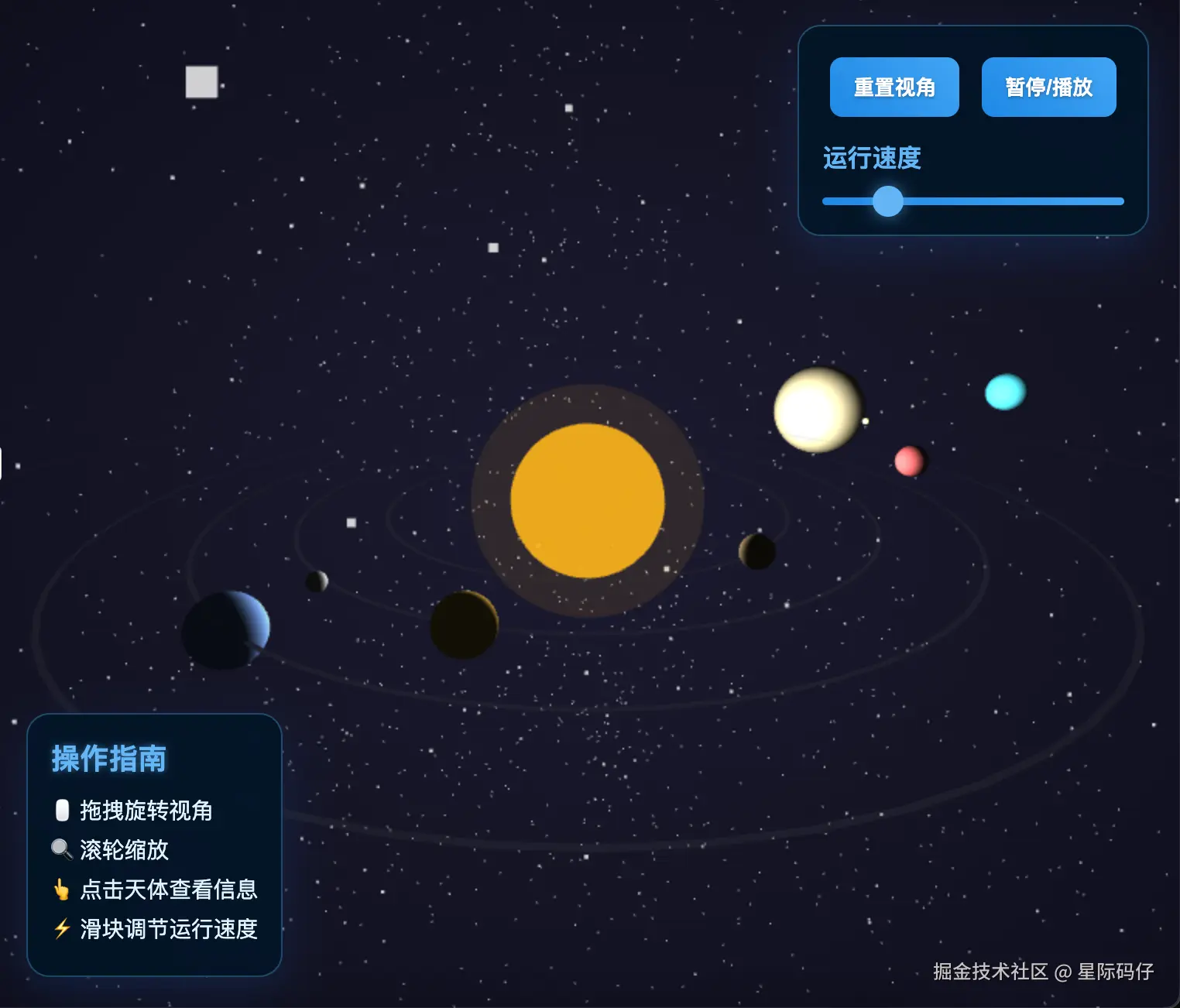 - 允许用户通过鼠标拖拽旋转整个太阳系视图