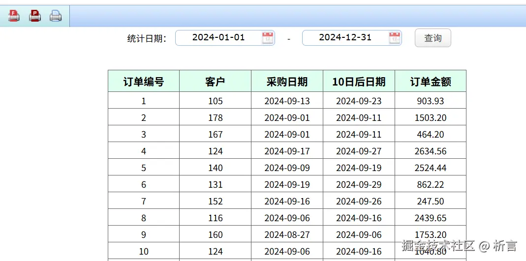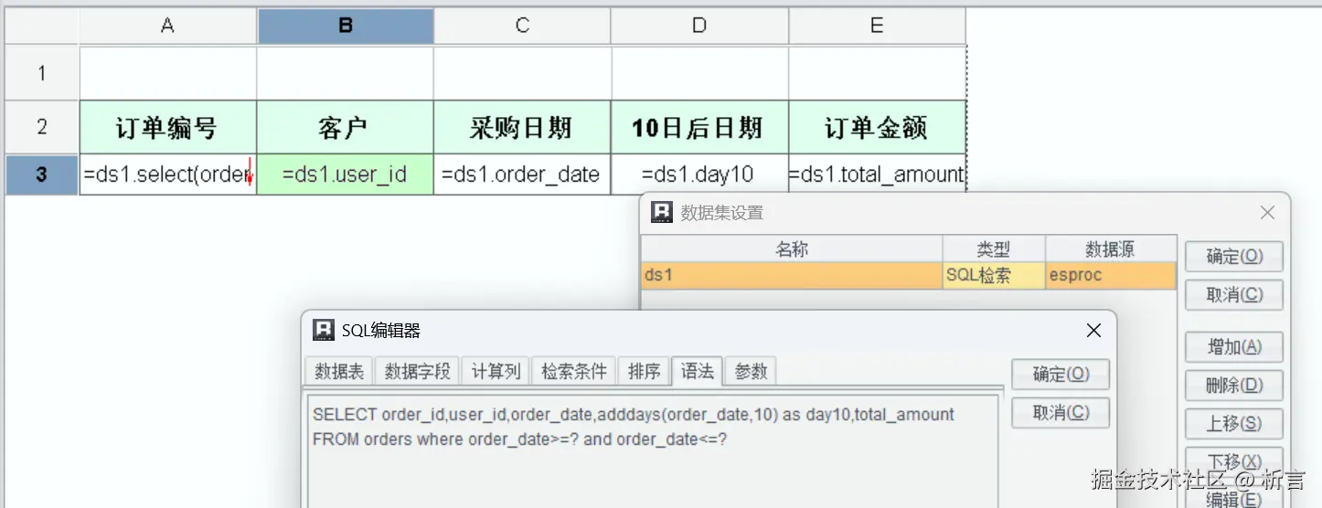 比如这里的订单查询报表,其中 SQL 中使用了 adddays 函数: