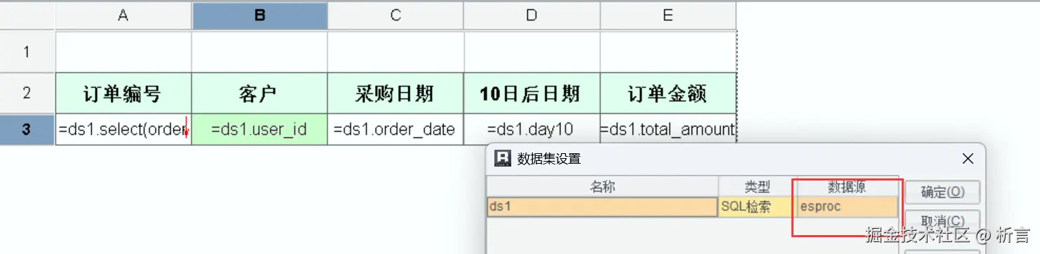 接着需要将报表模板的数据源指定成 esproc: