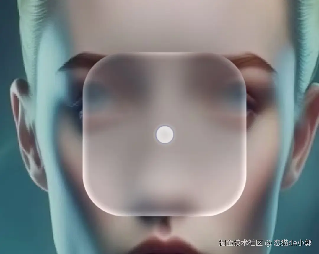 所以里实现的思路是扭曲的背景 + 模糊处理,我们把中间的 icon 部分屏蔽,换一张人脸图片,可以看到更明显的边缘扭曲效果: