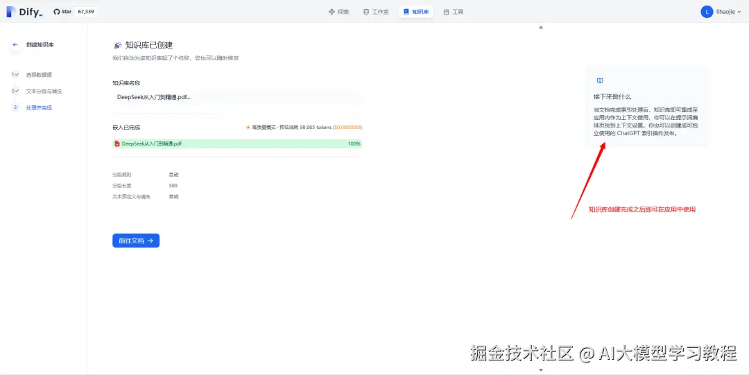 这时候知识库已经设置好了,知识库可以在之后的应用中进行引用。