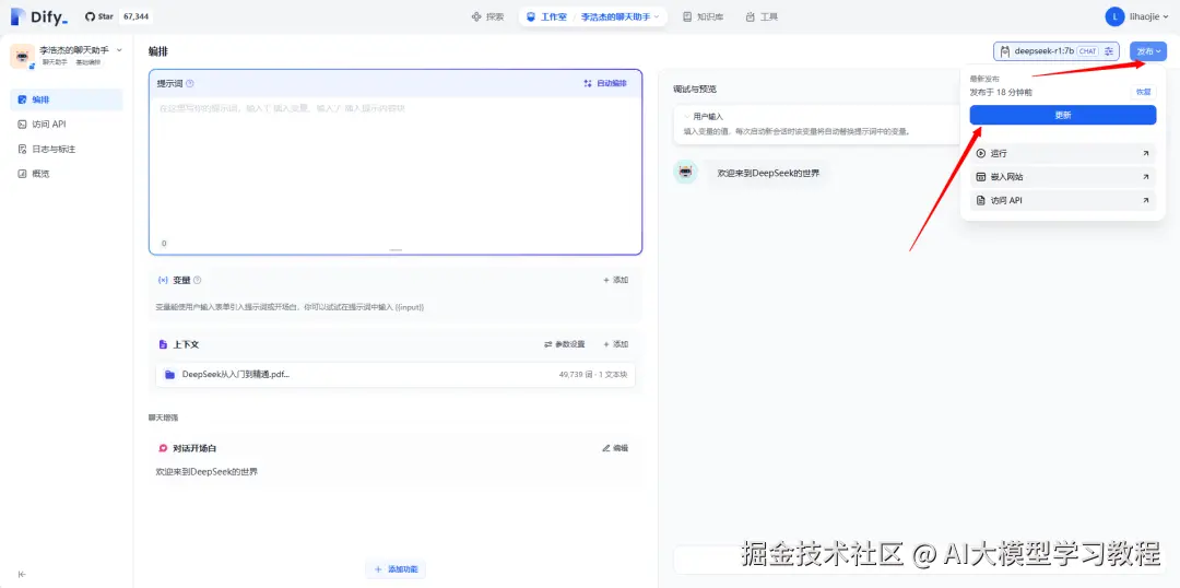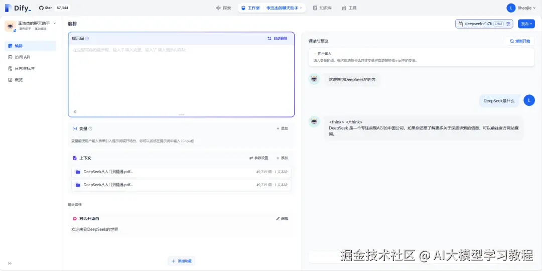 上面的流程基本涵盖了Dify的基本功能,也包括了DeepSeek的深度使用,例子很简单,但想要真正提效,还需要结合自身业务深入实践