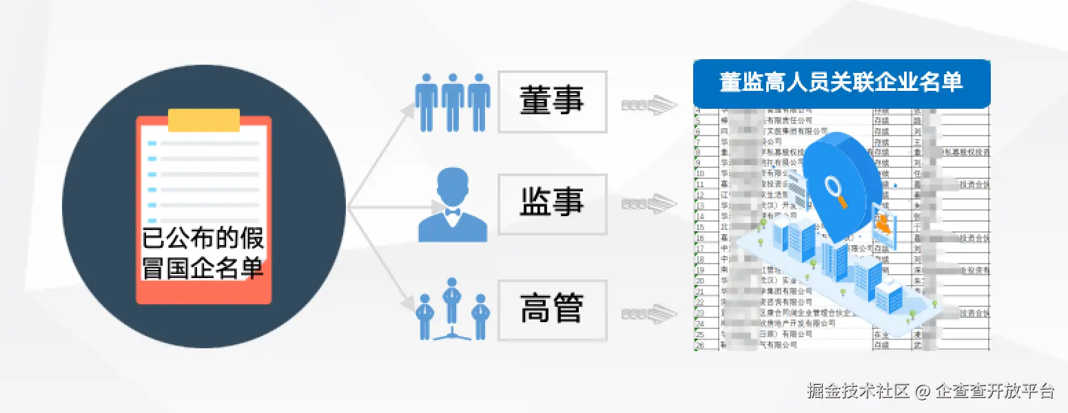 利用企查查主要人员、董监高任职关系、控制关系API,重点监控曾任职假冒国企的董监高人员,当其在新企业出现时,自动触发任职关联预警,生成风险扩散图谱。