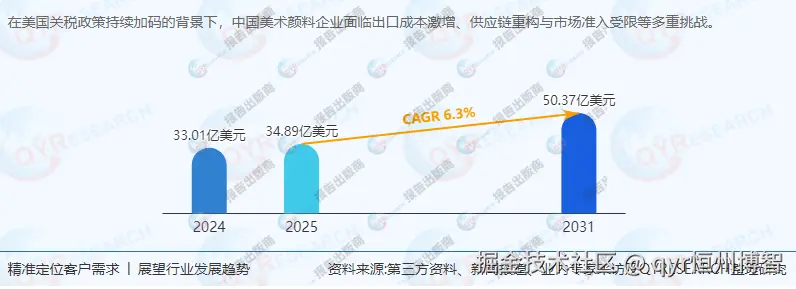 出口成本激增:中国美术颜料企业面临25%关税壁垒,利润率压缩5%-8%。