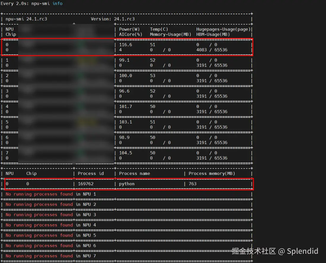 输入npu-smi info查看显存占用