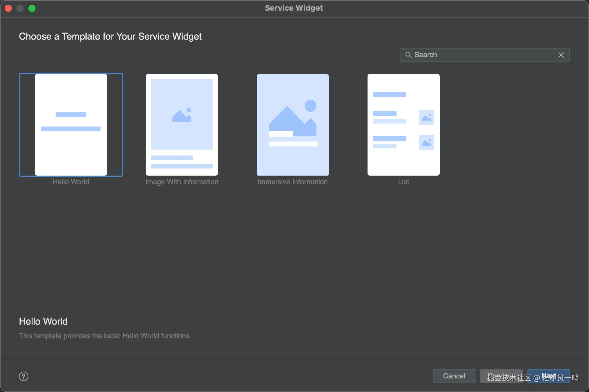 创建卡片很简单,可以在Application或者在元服务中,在你的主模块下,任意的文件下进行右键,选择New->Service Widget,选择你要实现静态或者动态卡片,这里,大家不用纠结,因为在创建完成之后,我们可以在form_config.json配置文件中,通过isDynamic参数修改卡片类型,为空或者true,则是动态卡片,false则为静态卡片,所以,在这里,你选择哪一个都没问题。