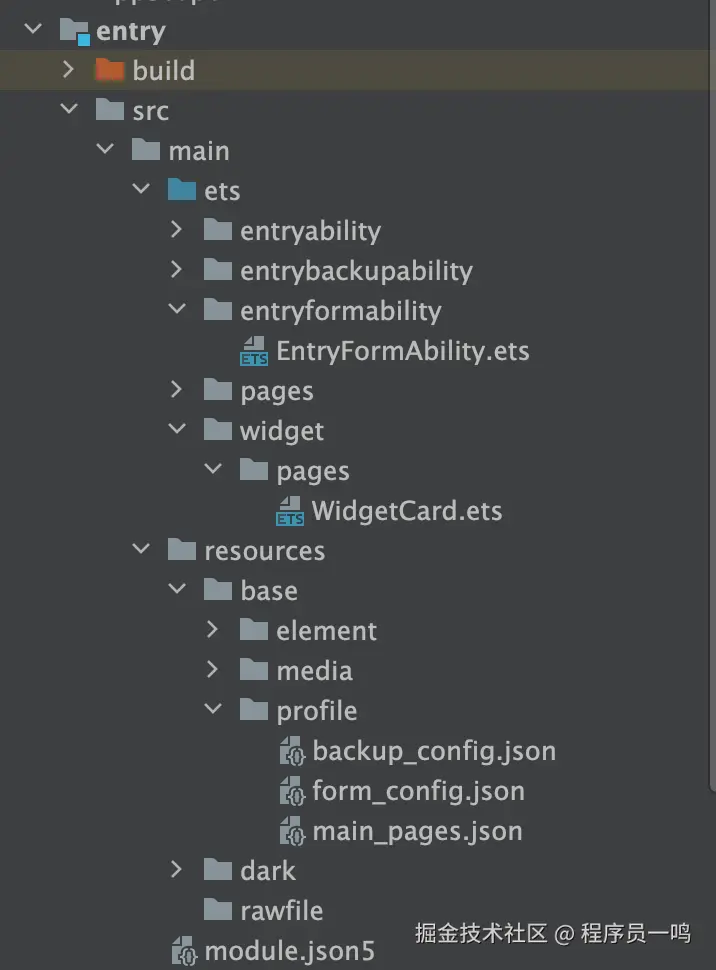 一个卡片的配置,主要是通过三个文件,也就是上面目录结构中的EntryFormAbility文件、WidgetCard文件和form_config.json配置文件,我们逐一进行分析一下: