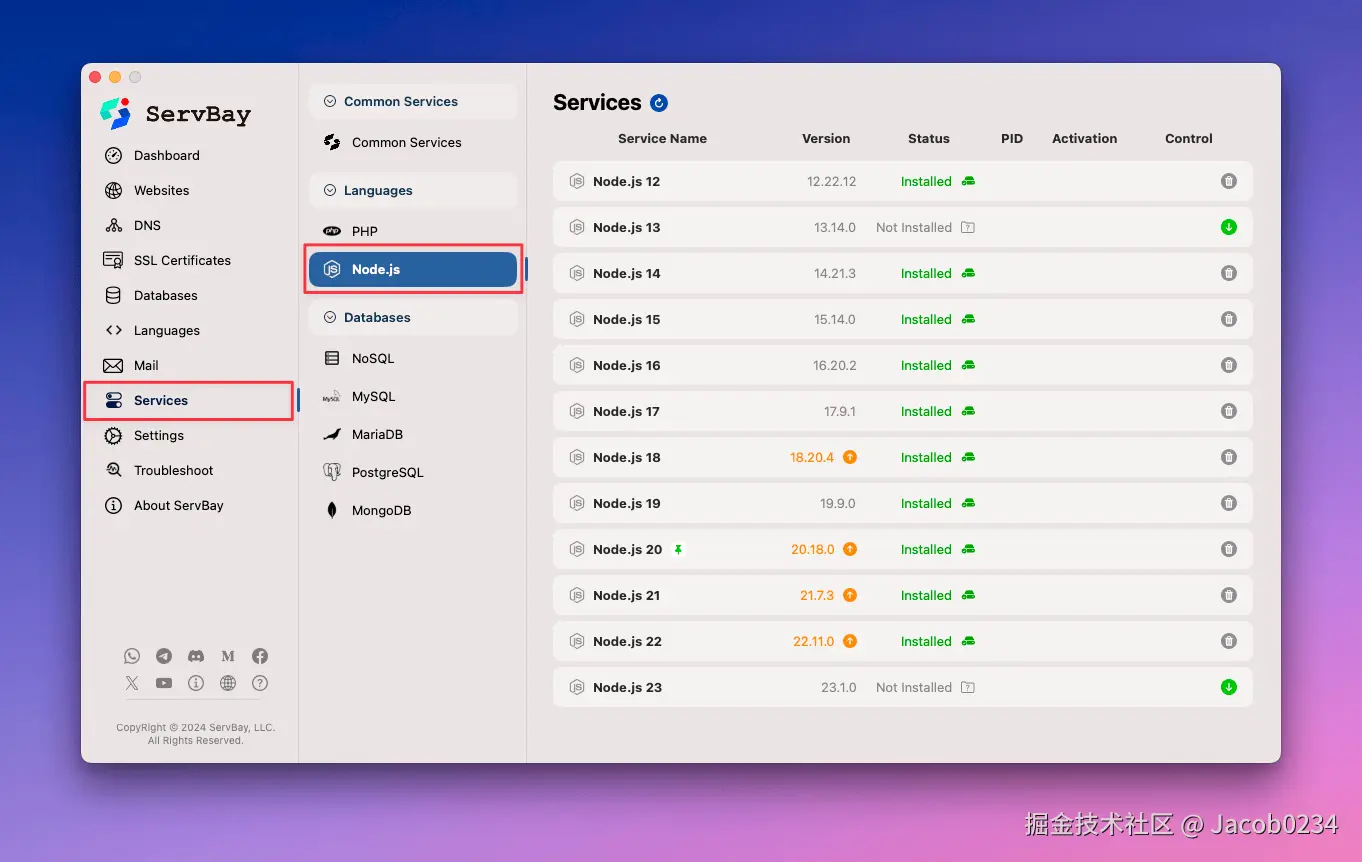 一、ServBay:你的 Node.js 环境“瑞士军刀”