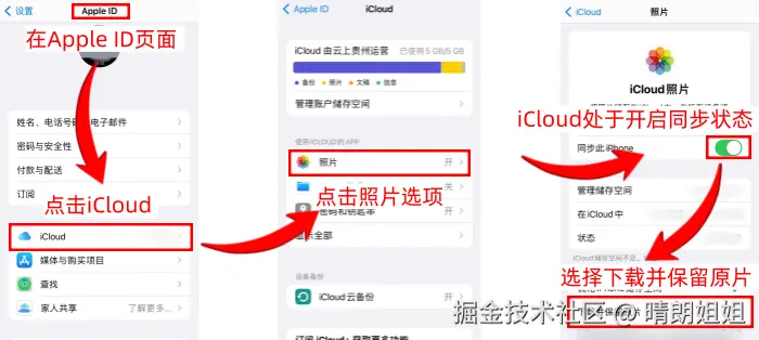 Step3:然后点击 “照片” 选项,确认iCloud处于开启同步状态,之后选择 “下载并保留原片” 就能把删除的视频恢复回手机上。