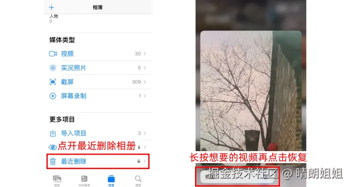 策略1:从“最近删除”相册里查找并恢复删除的视频