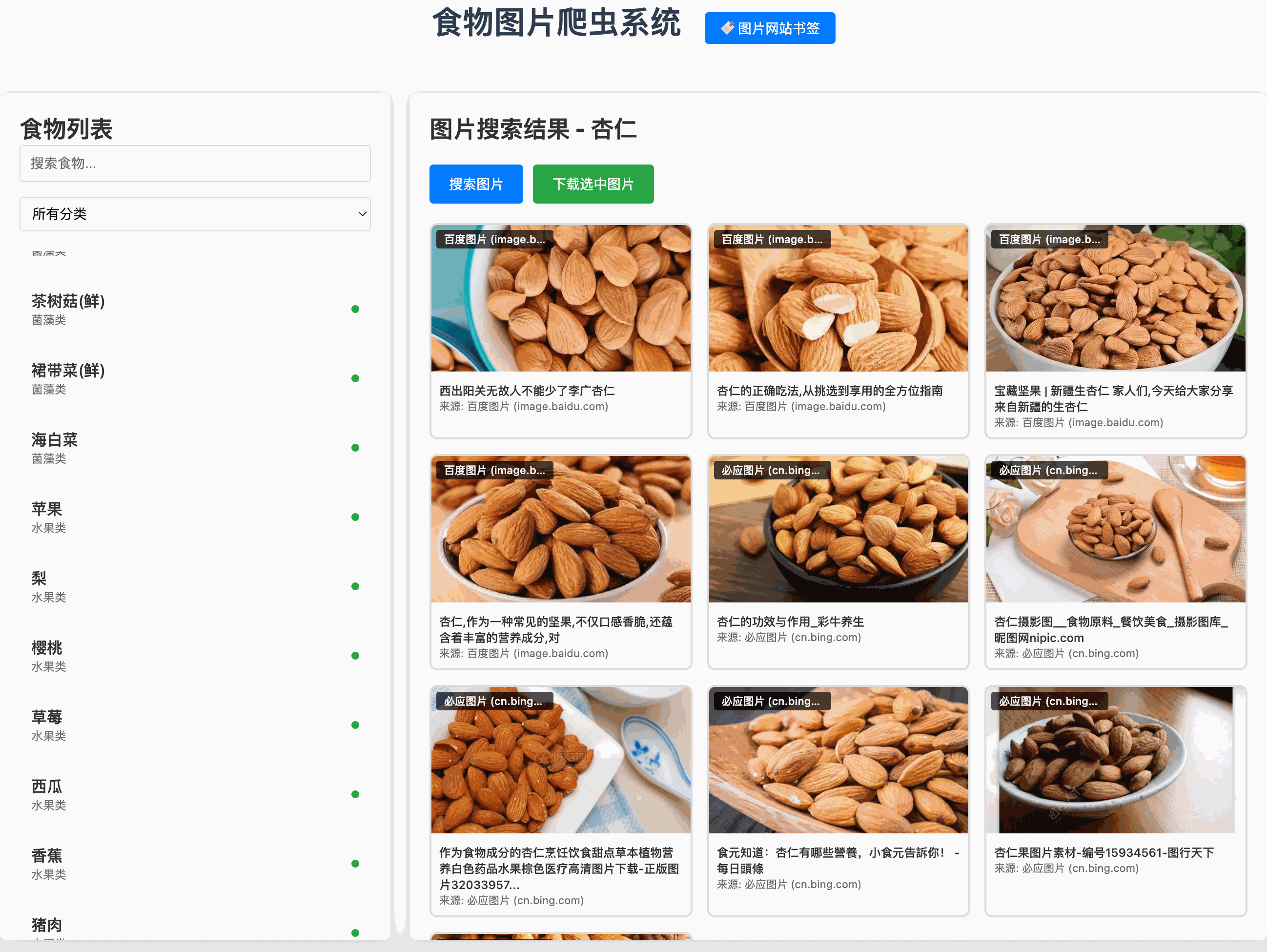 我想开发一个本地可以启动的爬虫服务,主要就是根据中文名称搜索对应食物图片,列举可以下载的图片,用户人工确认后,下载到本地对应的目录