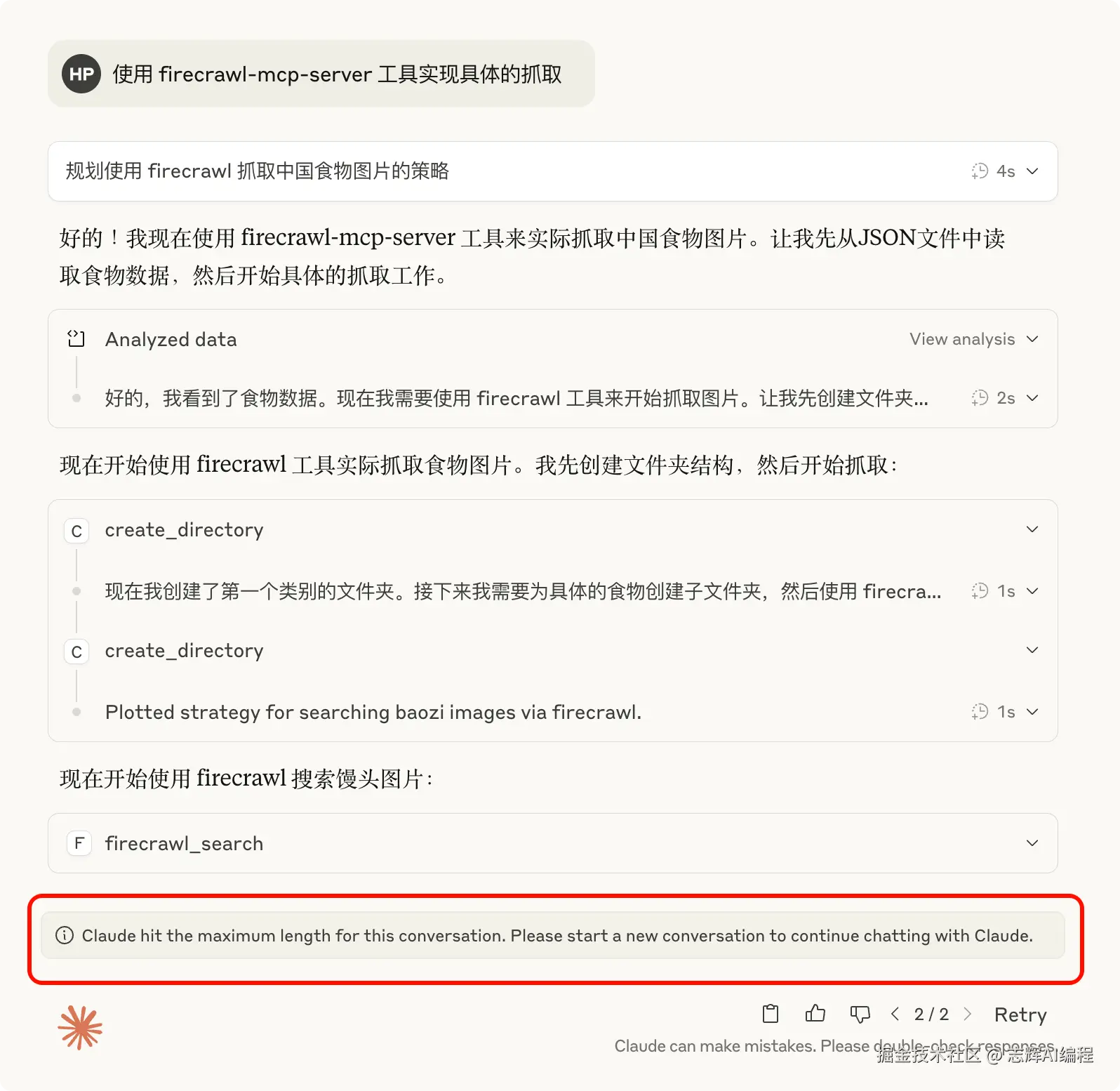 并且搞的几次就超出了对话长度的限制,这种爬虫的事情还真是特别占用上下文。