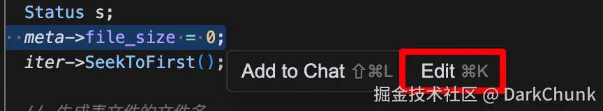 使用cursor中的Edit功能绕过chat方法: 我不清楚为什么生效, 但是按照下面这种路径操作确实是解决了问题