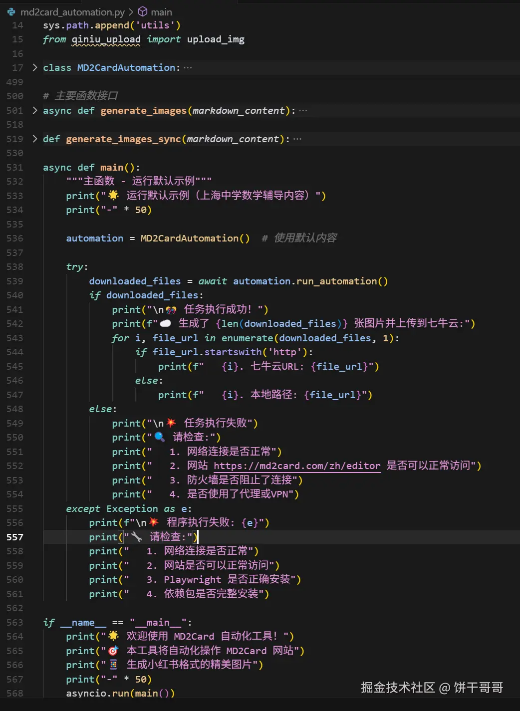 接下来,把@md2card_automation.py 封装成一个函数脚本,用户输入内容后,运行脚本把多个图片地址以列表形式返回给用户。