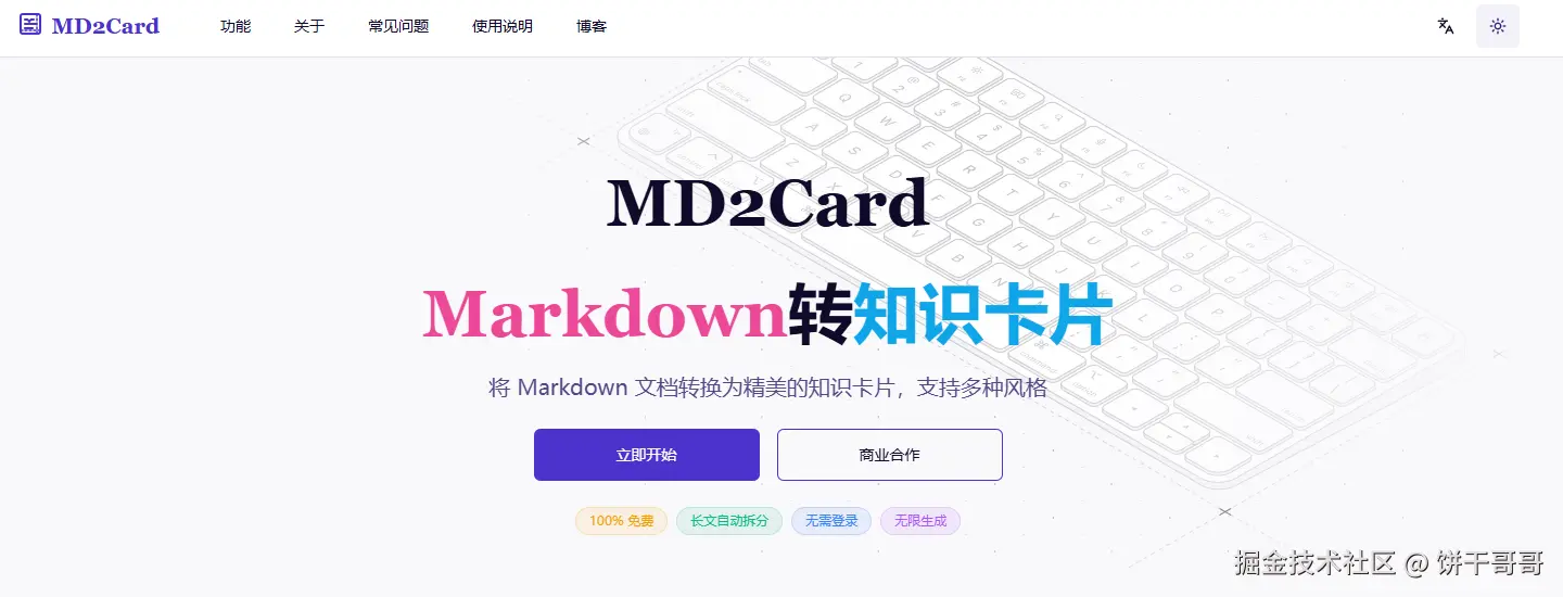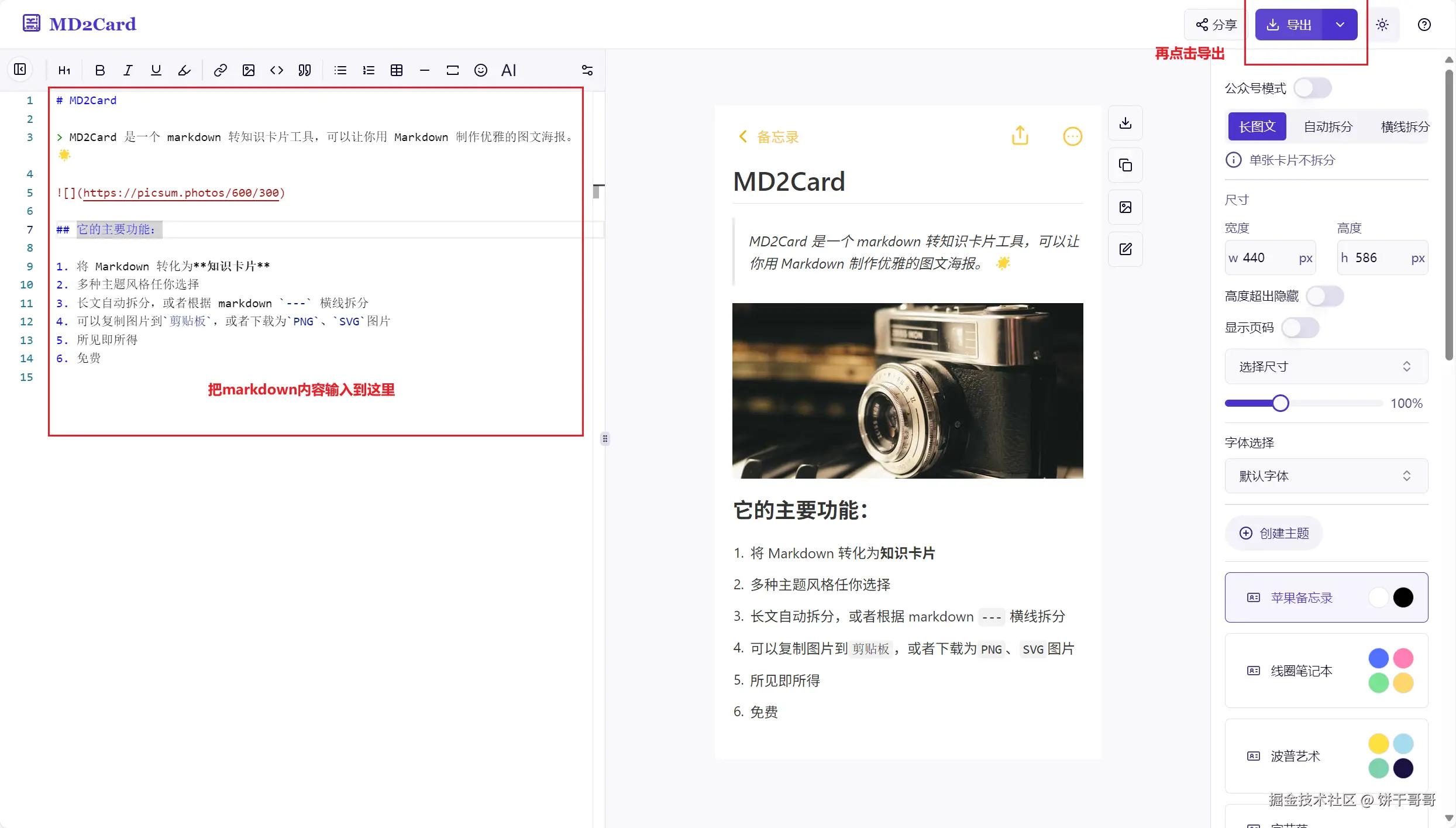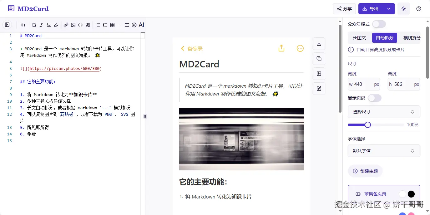 对于没iphone,或者想用电脑的同学,也可以通过某些网站来实现,例如https://md2card.com/