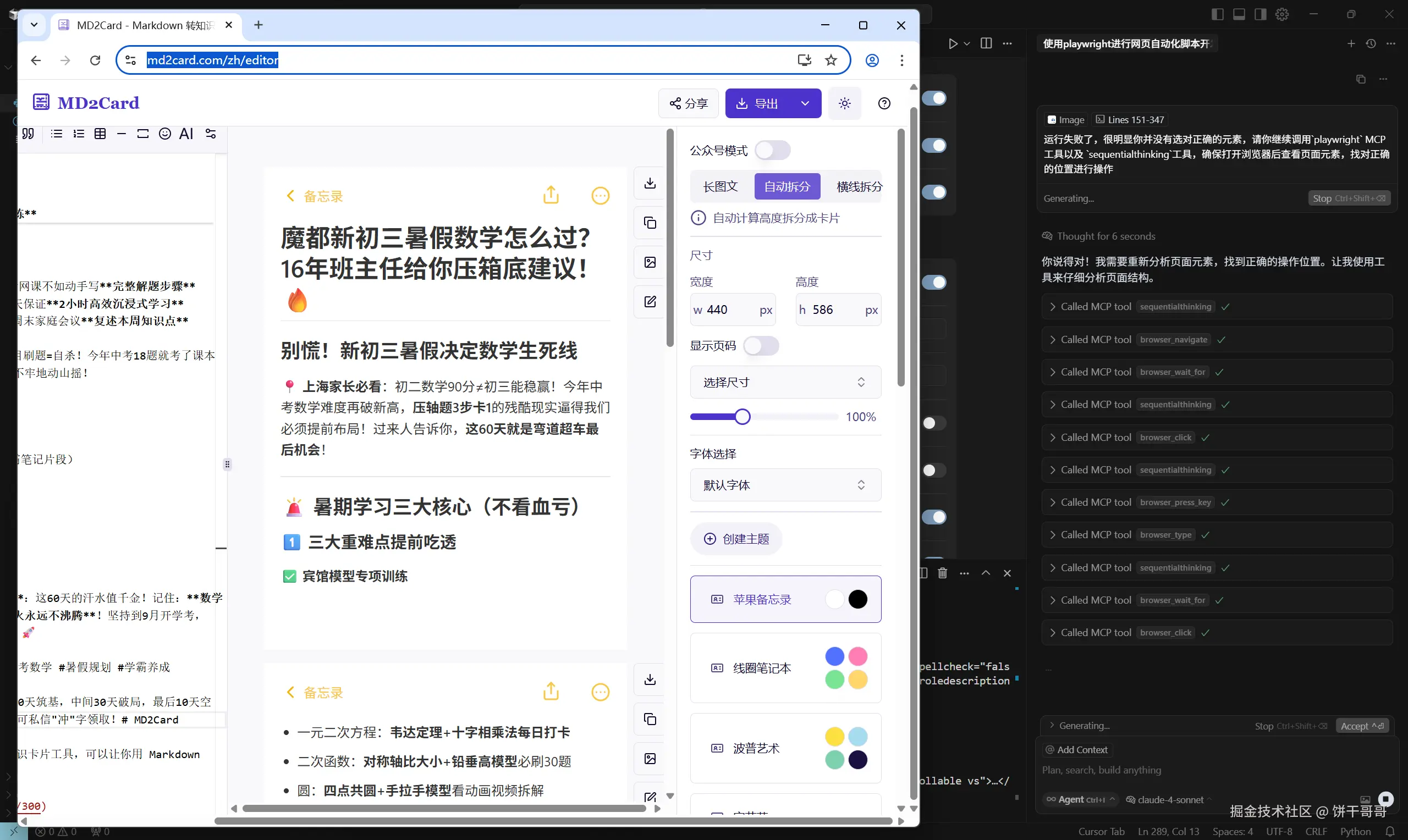 OK,接下来你还会看到Cursor自动把浏览器打开了,去访问这个md2card的网站,找每个操作的元素是什么?