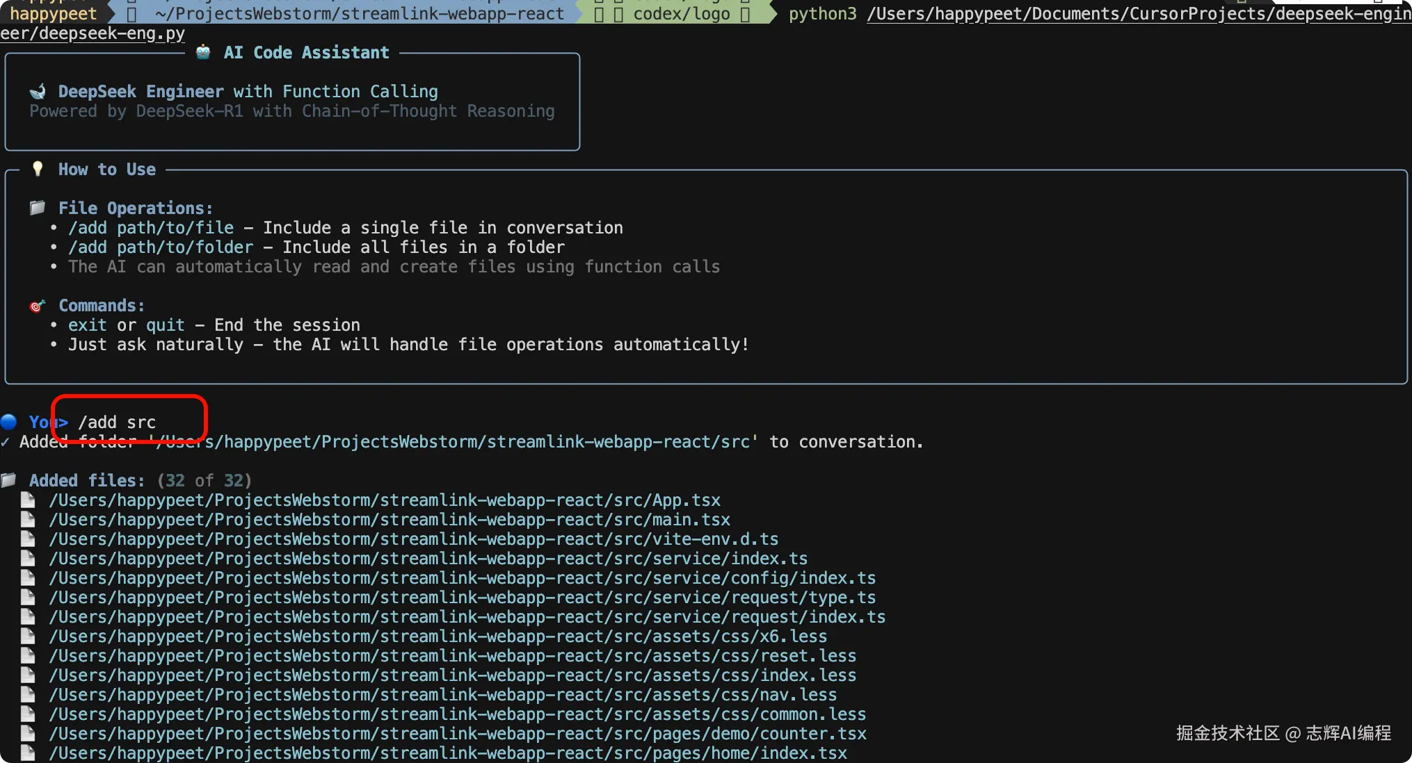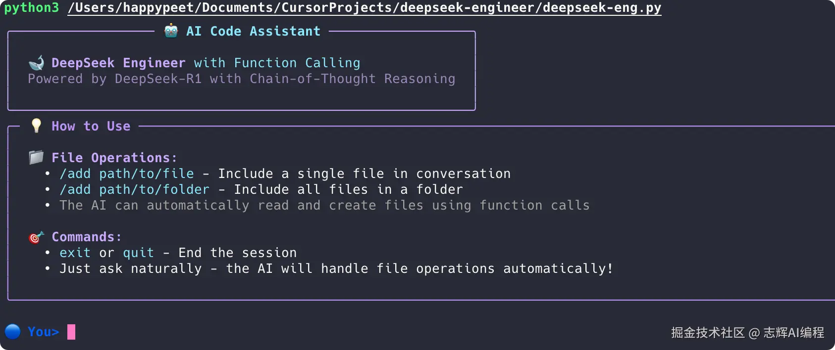 python3 /Users/happypeet/Documents/CursorProjects/deepseek-engineer/deepseek-eng.py