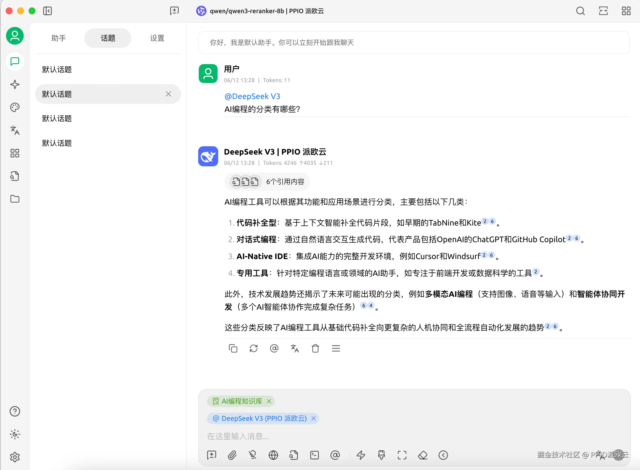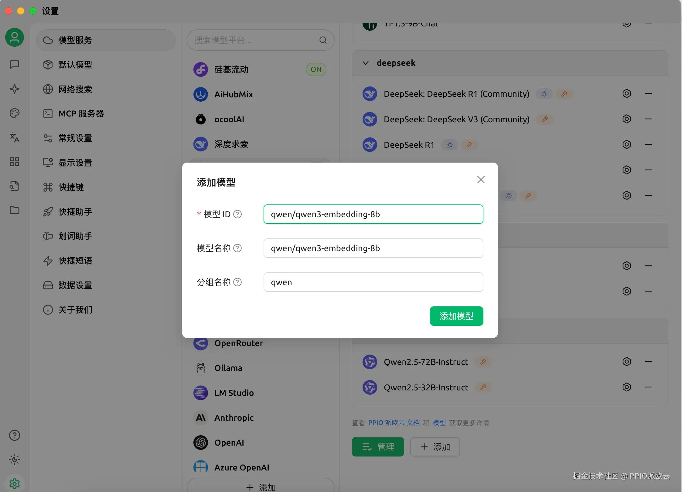 2. 在 Cherry Studio 接入 PPIO 的 Qwen3-Embedding