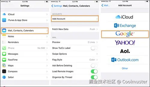 转到“设置”、“邮件、通讯录、日历”,然后选择“添加帐户”选项。