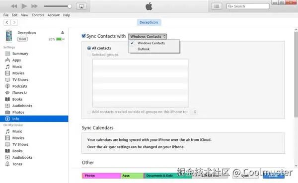 使用最佳的联系人管理程序,通过 iTunes 与你的iOS设备同步。你可以选择 Outlook、Google 通讯录以及 Yahoo 通讯录: