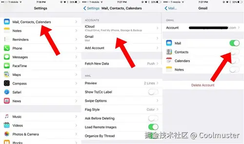 转到“设置”,然后转到“邮件、通讯录、日历”并选择 Gmail 帐户。