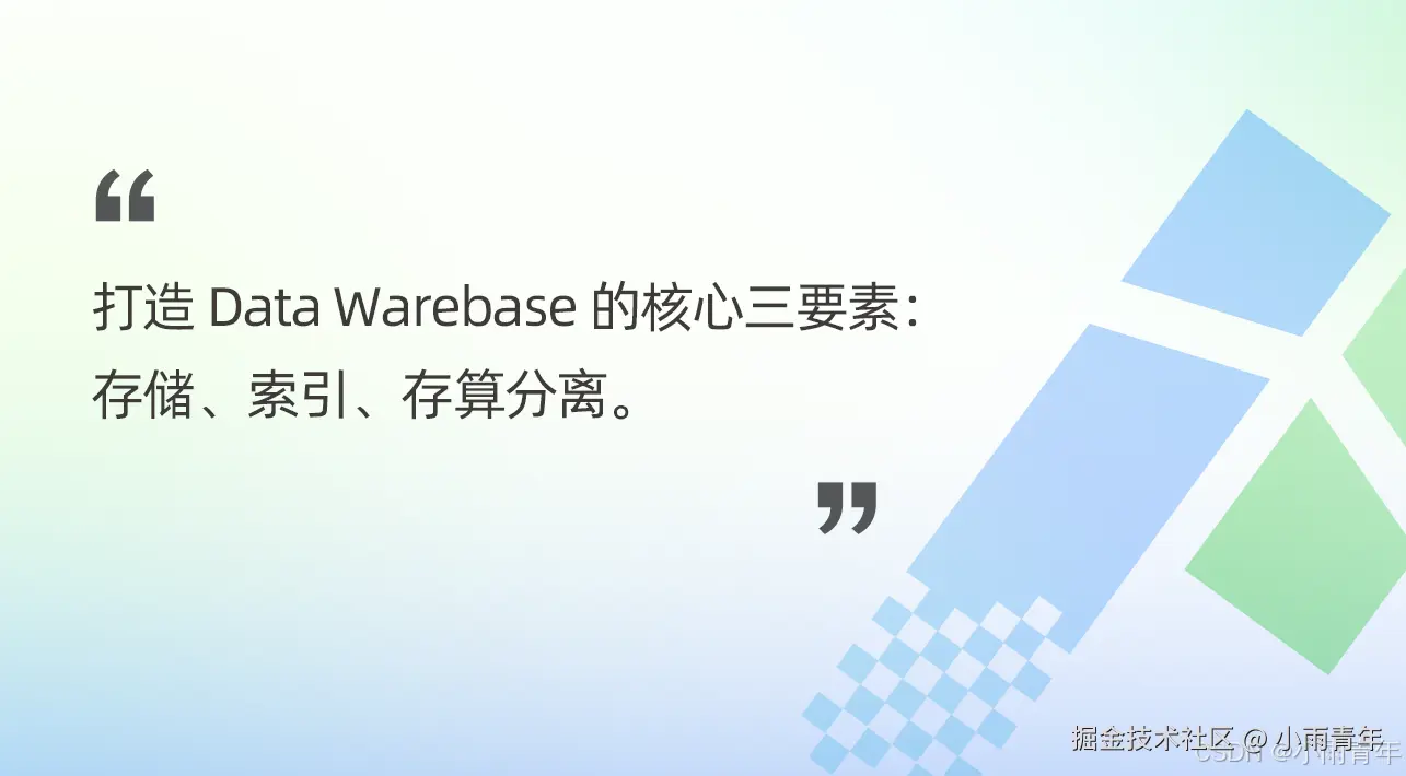 许多客户会问我们:“你们是如何将这些本质上差异巨大的能力整合到一个系统中的?”其实,我们整个团队经历了数据库,大数据,再到数据库的时代,积累了大量的工程经验。我们今天的产品其实就是集成了数据库和大数据的最重要的三个能力,第一是存储,第二是索引,第三是在高速存储上做到数据库级别的存算分离。