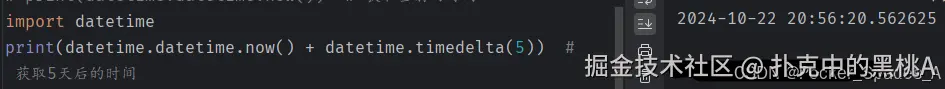 语法:datetime.datetime.now() + datetime.timedelta(n)