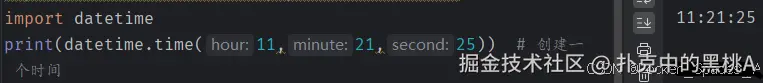 语法:datetime.time(hour,minute,second)