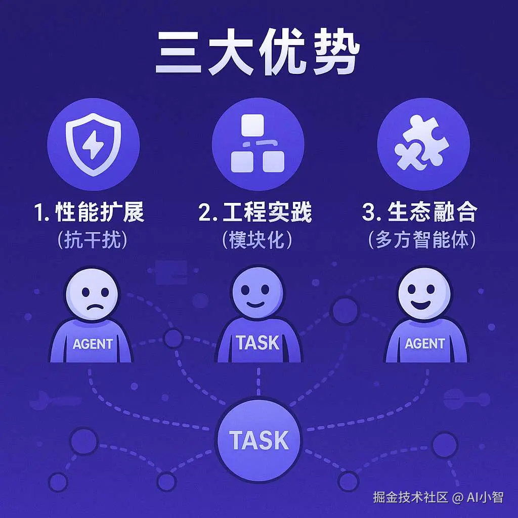 随着 AI 智能体能力的提升,开发者开始关注如何将多个智能体组合起来处理复杂任务。相比单一智能体,多智能体架构具备三大显著优势: