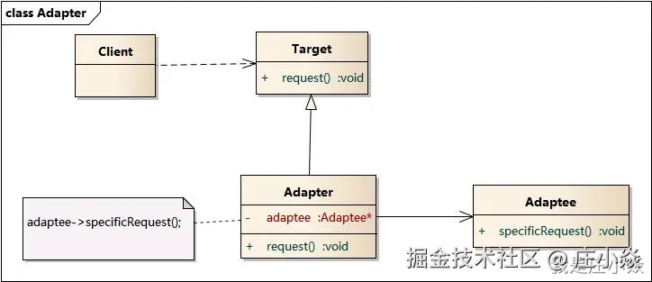 | 目标接口 (Target) | 客户端期望的接口。客户端通过这个接口与适配器交互。 |