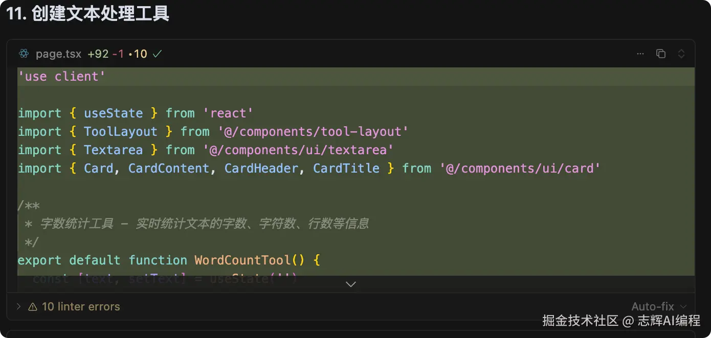 其实到这里,我们可以看到 cursor 根据我们的 prd.md 文档里的需求,逐步的在创建,从一个空目录开始创建工程基本的配置文件,然后创建基本的框架代码,然后创建业务组件代码,看来思路还是很清晰的。