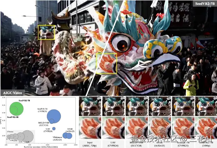SeedVR2[3] 是字节跳动推出的视频高清修复单步 Diffusion 模型,采用 Apache 2.0 开源协议。性能比其他模型要好的多,不过效果一般。