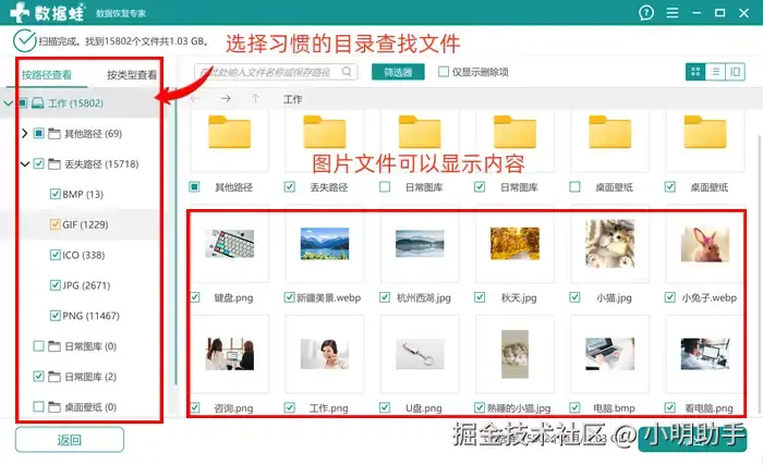 它强大的扫描技术还远不止文件搜索,还能够将可恢复文件的基本信息和内容显示出来。恢复数据的软件哪个最好用?数据 蛙恢复专家凭借它强大的扫描能力和简便的操作流程,让许多朋友成功找回自己重要的文件。